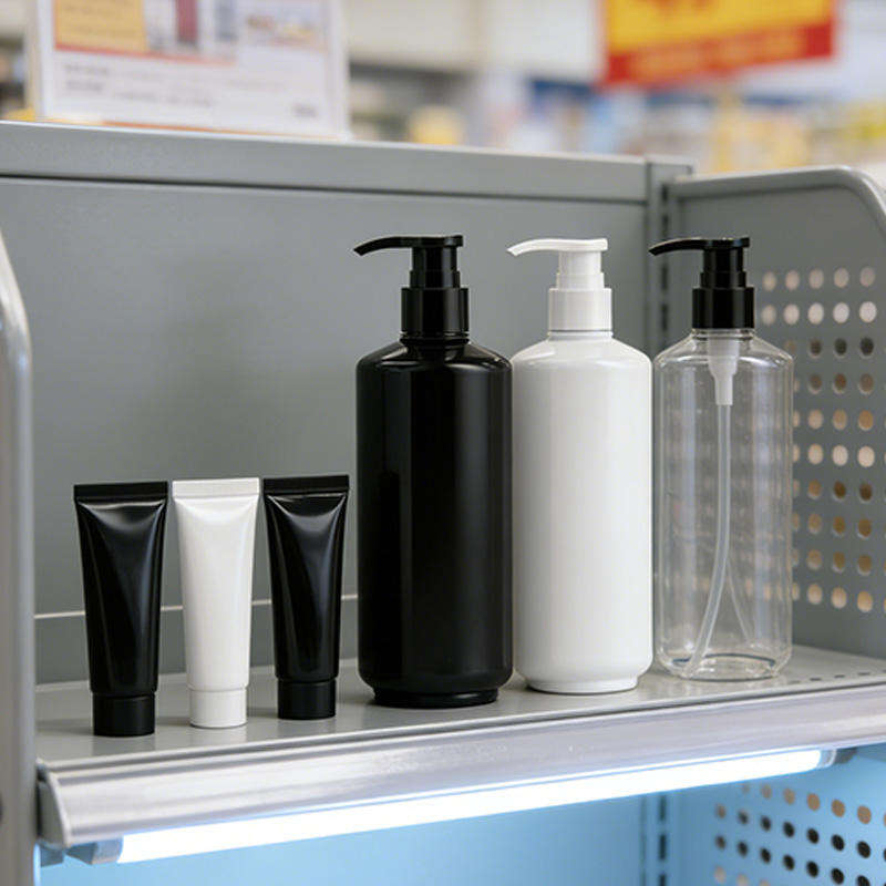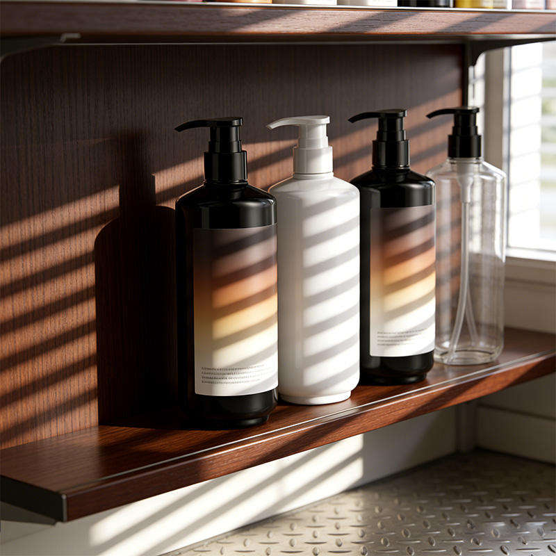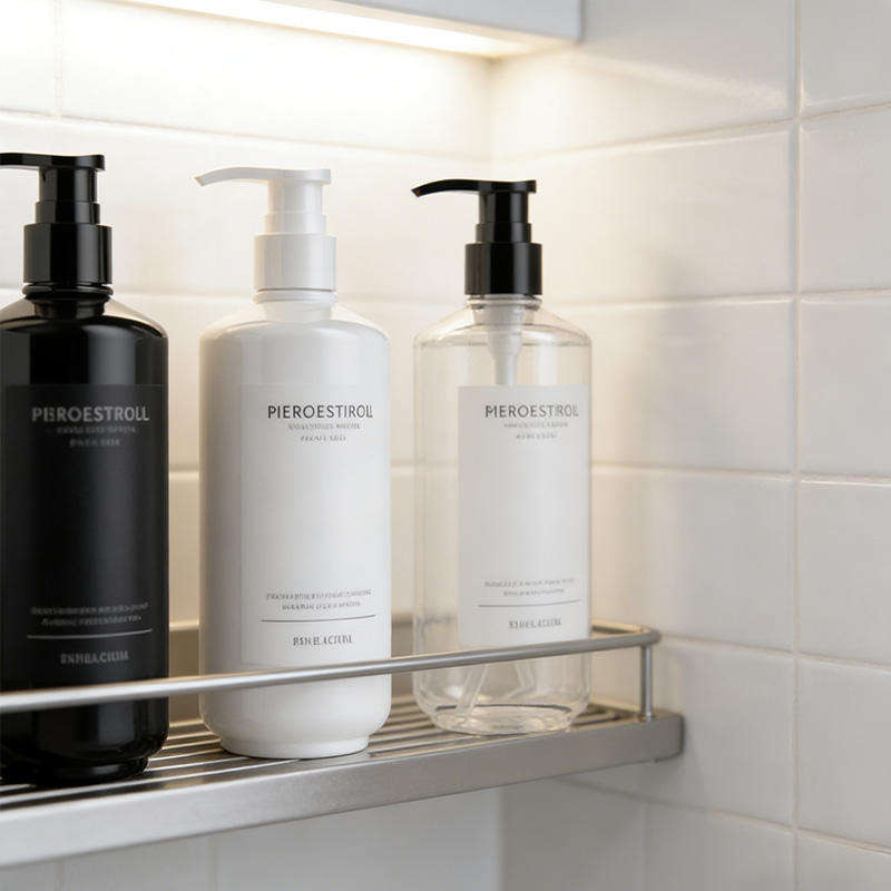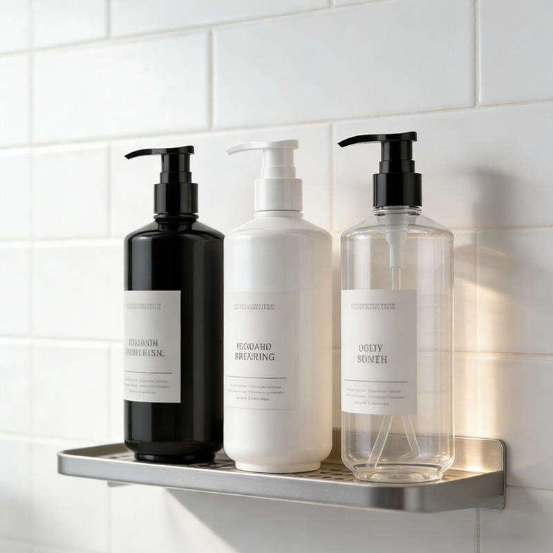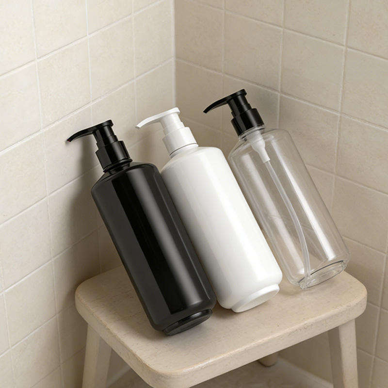 ขวดปั๊มพลาสติก PET สีขาวดำทรงกลม ขนาด 450 มล. สำหรับโลชั่น เจลอาบน้ำ แชมพู บรรจุภัณฑ์เครื่องสำอาง ขายส่ง