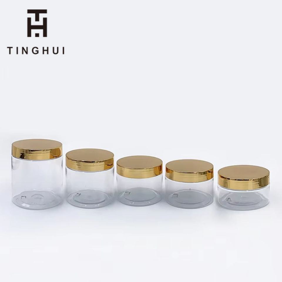 Wholesale 4oz 8oz 16oz 20oz 22oz 33oz PET Plastic Cosmetic Jar with Gold Silver Top Lid for Cream Skin Care Packaging Container