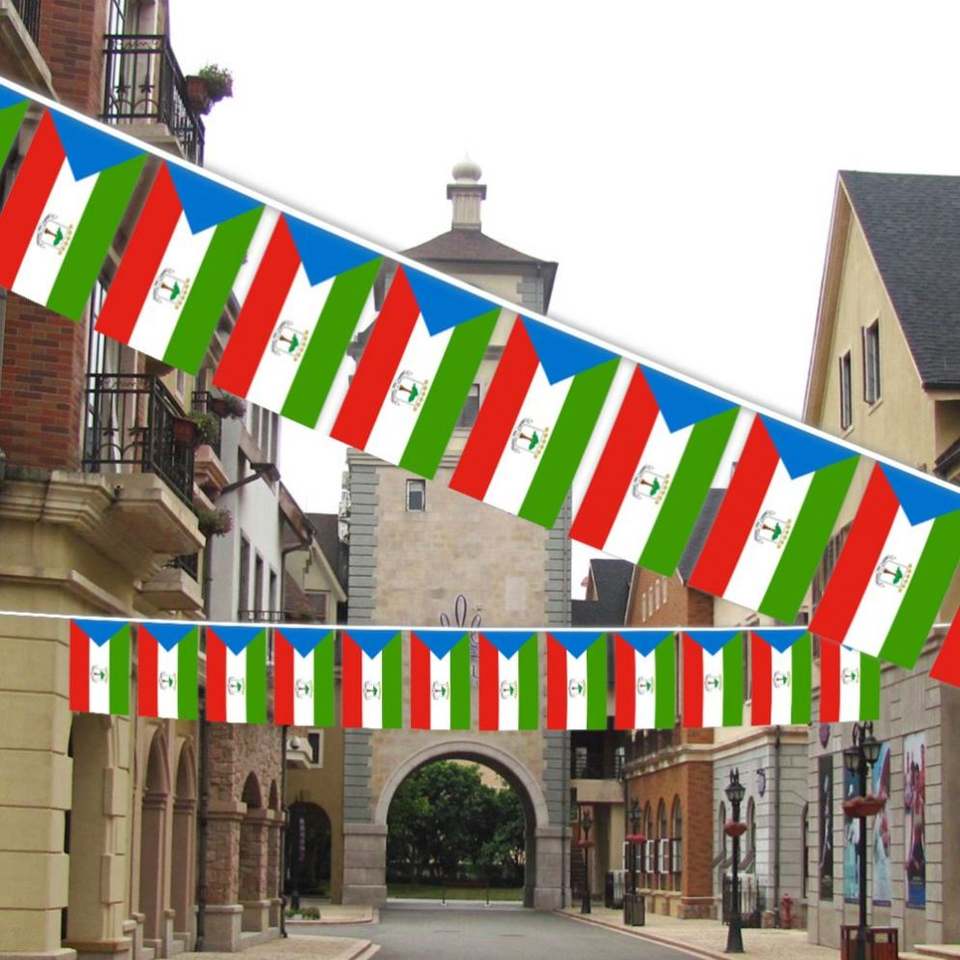 ธงประดับตกแต่งแบบสายยาว ขนาด 5.5x8 นิ้ว สำหรับตกแต่งภายในและภายนอกอาคาร ประเทศกินีอีควอทอเรียล ขายส่ง (20 ชิ้น/ชุด)