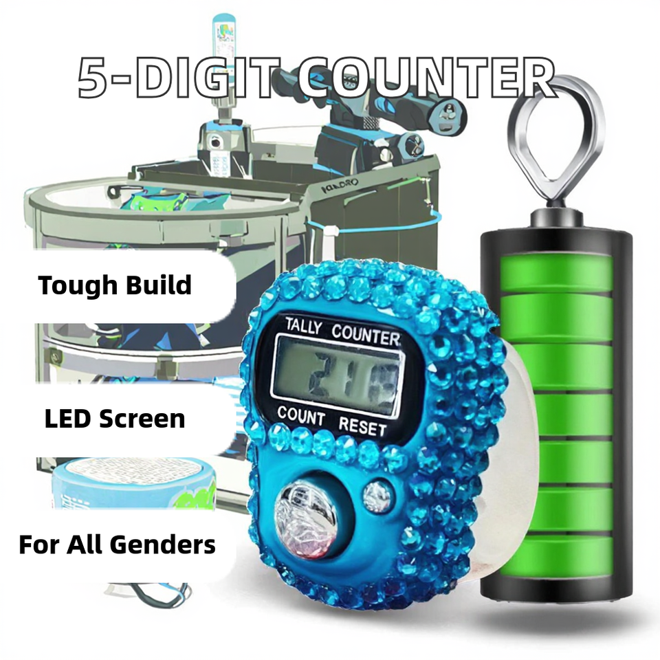 เครื่องนับจำนวนแบบมือถือ 5 หลัก แบบแหวนนับจำนวนสำหรับชาวมุสลิม พร้อมจอ LED พลาสติก ใช้พลังงานจาก USB พร้อมหน่วยความจำเก็บข้อมูล 1 ปี