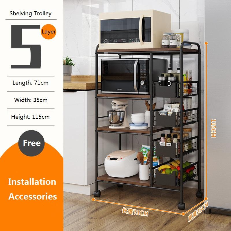 ชั้นวางของอเนกประสงค์สำหรับครัว 5 ชั้น คุณภาพสูง แบบตั้งพื้น ถอดประกอบได้ สำหรับเตาไมโครเวฟ ขายส่ง