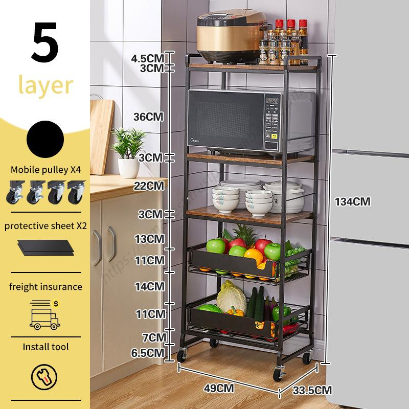 ชั้นวางของในครัวสแตนเลสแบบถอดได้ 5 ชั้น คุณภาพดี ขายส่ง ราคาถูก สำหรับเก็บไมโครเวฟ