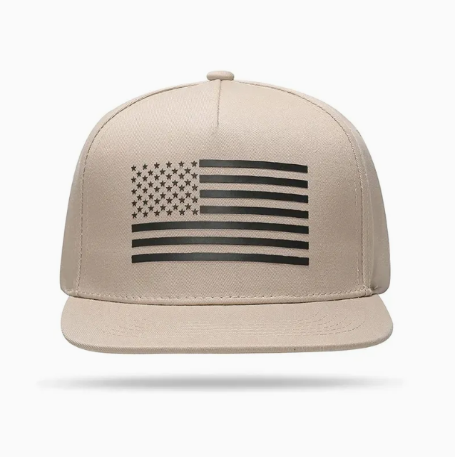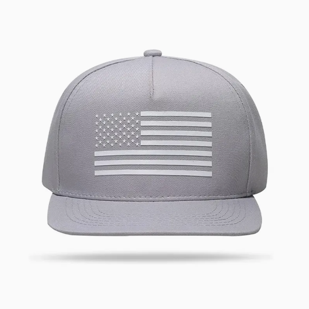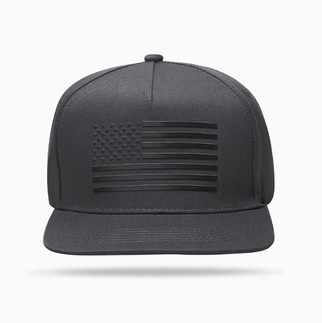 หมวกสแน็ปแบ็กผ้าฝ้ายปีกแบนหมวกฮิปฮอป5แผงแบบมีโครงหมวกโลโก้แผ่นยางตามสั่ง