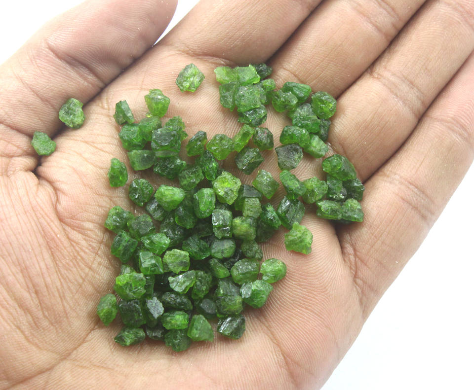 อัญมณีทัวร์มาลีนธรรมชาติสีเขียวที่ไม่ผ่านการบำบัดจำนวน50ชิ้นมีคุณภาพดีเยี่ยมและมีความสูง6มม.