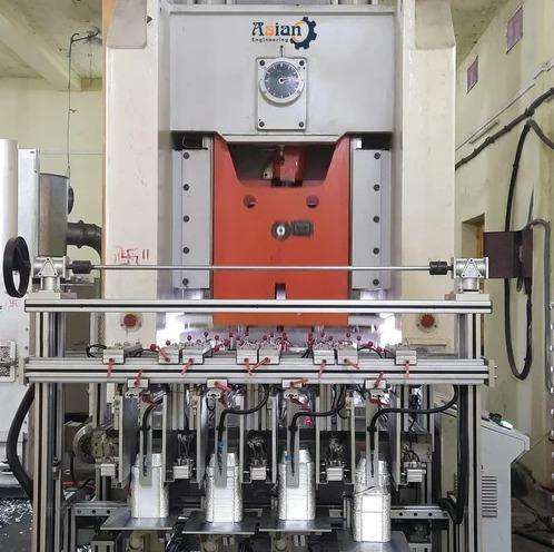 เครื่องผลิตภาชนะอลูมิเนียมฟอยล์อัตโนมัติความเร็วสูง กำลังการผลิตสูงสุด 50 ชิ้น/นาที สำหรับการผลิตอย่างมีประสิทธิภาพ