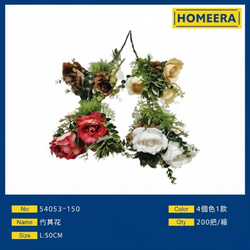 ดอกไม้ประดิษฐ์พลาสติกโพลีเอสเตอร์ขนาด50ซม. สำหรับตกแต่งบ้านงานแต่งงานและวันวาเลนไทน์มี4สี