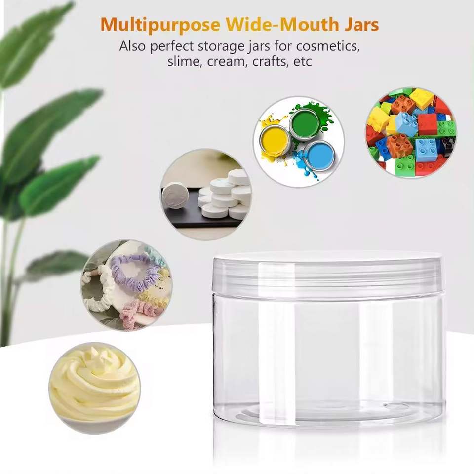 ขวด PET ใสปากกว้างสำหรับบรรจุเครื่องสำอาง ขนาด 50 กรัม 50 มล. 150 มล. 200 มล. 2 ออนซ์ 4 ออนซ์ 8 ออนซ์ 16 ออนซ์ พร้อมฝาเกลียว สำหรับเก็บเครื่องสำอาง รับผลิตตามสั่ง ขายส่ง