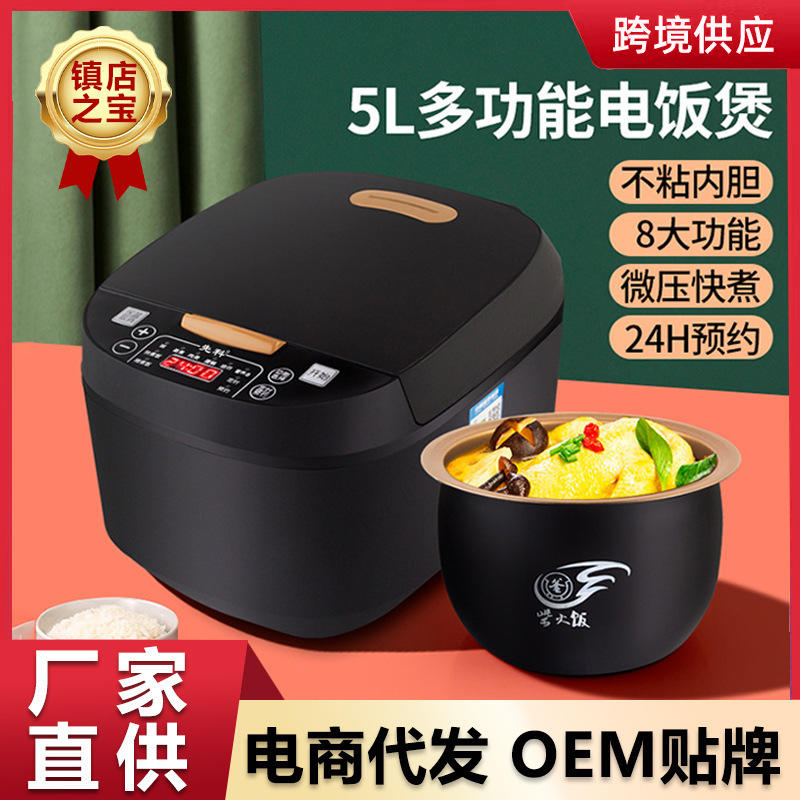 หม้อหุงข้าวไฟฟ้า 5 ลิตร สีดำคริสตัล แบบไม่ติดกระทะอเนกประสงค์ สำหรับใช้ในครัวเรือน ขายส่งจากโรงงานโดยตรง