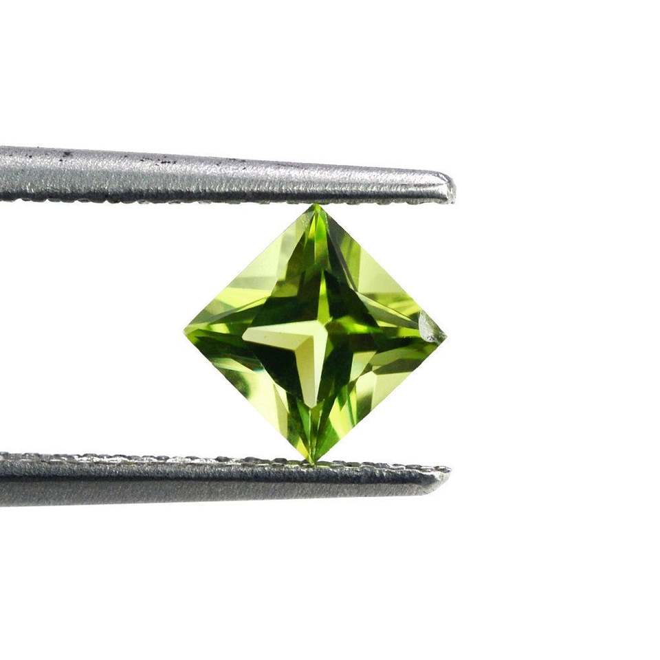 หินควอตซ์ธรรมชาติสีเขียวละเอียดตัดเป็นสี่เหลี่ยมขนาด5มม. สำหรับเจ้าหญิงพลอยเพอริโดสีเขียว