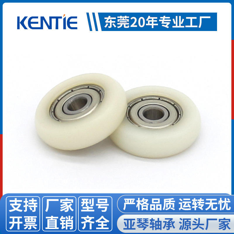 ล้อรางพลาสติก PE ขนาด 6*29*8 มม. ล้อไนลอนแบบมีลูกปืน ล้อเคลือบยาง ทนทานต่อการสึกหรอ เงียบ สำหรับประตูบานเลื่อน