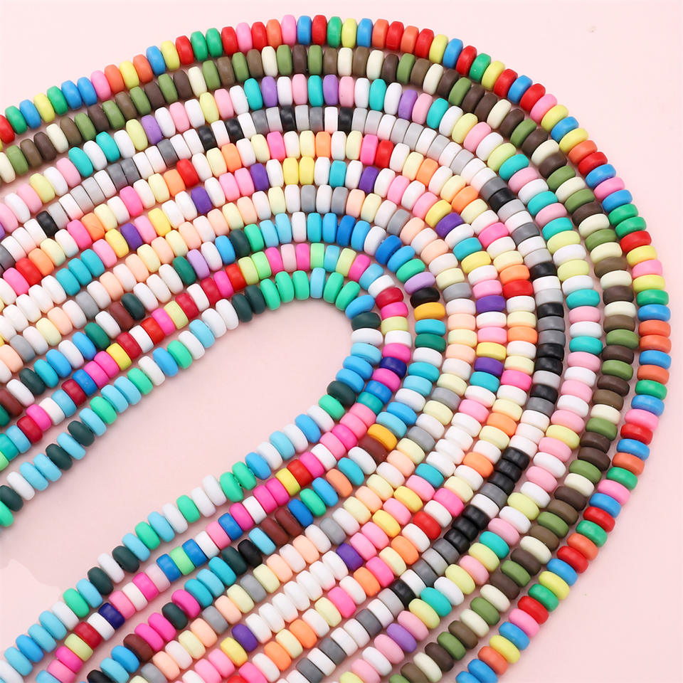 ลูกปัดโพลิเมอร์ทรงกลมแบนสีลูกกวาดขนาด6*3มม. ลูกปัดหลวมสำหรับทำเครื่องประดับแบบทำมือ