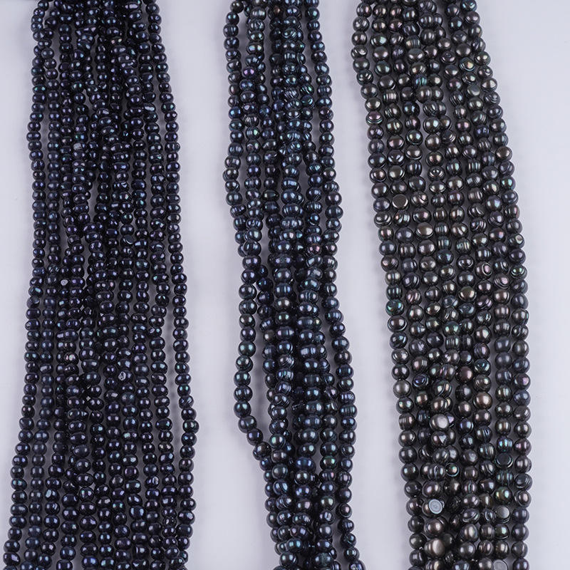 Wholesale 6-7/8/9mm Natural Freshwater Loose Pearls Punch Black Semi-Finished Pearl String for DIY Necklace Bracelet Material