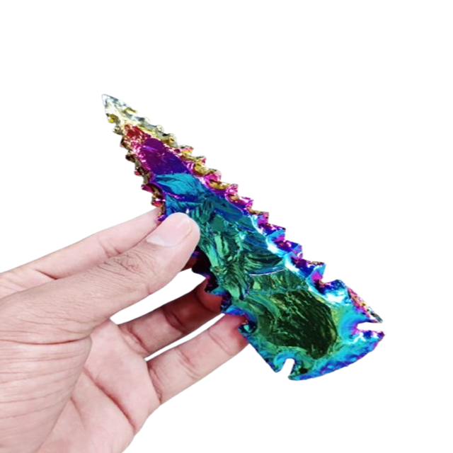 พลอยหัวลูกศรควอตซ์ออร่าไทเทเนียม6นิ้วคุณภาพสูงศิลปะเรกิแกะสลักคริสตัลธรรมชาติที่ดูสวยงามสวยงาม