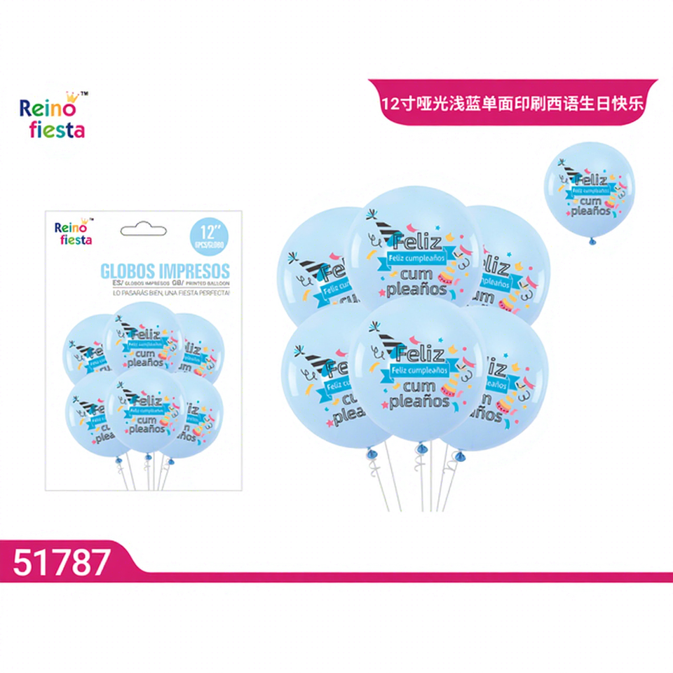 ลูกโป่งวันเกิดสเปนสีฟ้าอ่อน6แพ็ค12นิ้วสำหรับวันรับปริญญาวันฮาโลวีนตรุษจีน