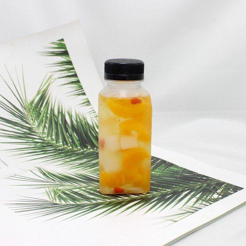 ขวดน้ำผลไม้พลาสติกสี่เหลี่ยมพร้อมฝาปิด