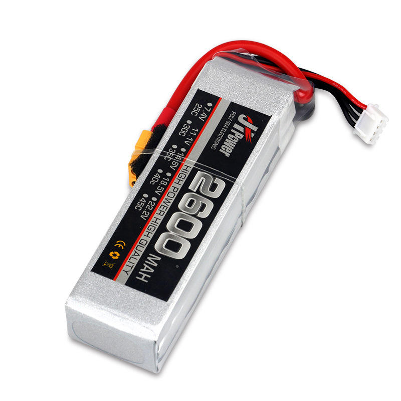 แบตเตอรี่ Lipo 7.4V 2600mAh 2S 60C อัตราสูงสำหรับเครื่องบิน RC แบบปีกคงที่การควบคุมระยะไกล