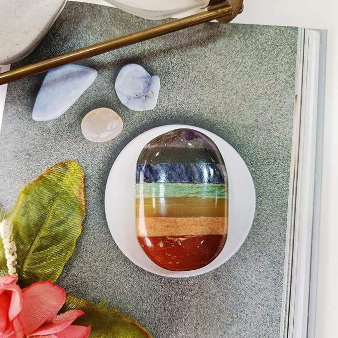 หินปาล์มจักระ7ก้อนคริสตัลบำบัดธรรมชาติสำหรับเรกิและนั่งสมาธิ