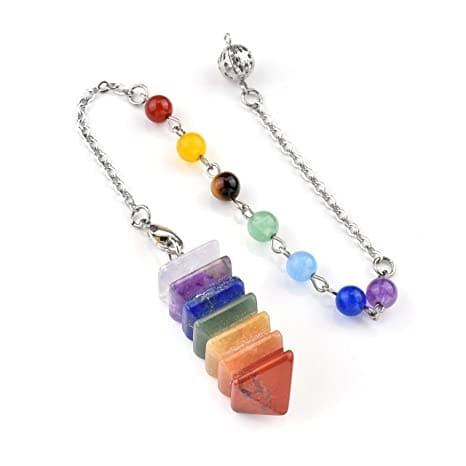 เพนดูลัมทรงพีระมิด 7 จักระ สำหรับดowsing ผลิตจากคริสตัลธรรมชาติเพื่อการบำบัด คุณภาพดีจากอาเมีน่า อาเกต