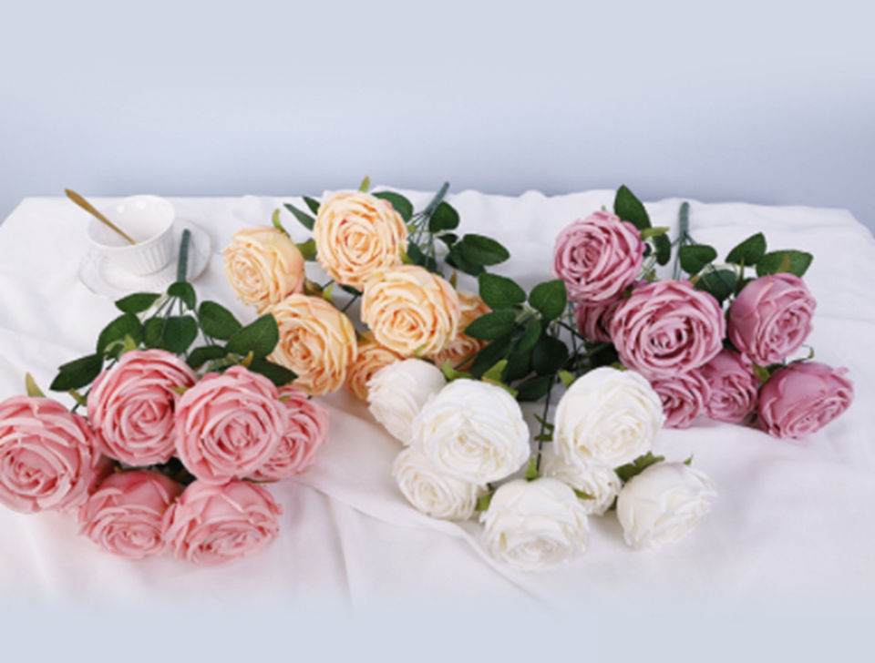 ดอกกุหลาบโนเบิลคอนซอร์ต 7 หัว ขายส่ง สำหรับตกแต่งบ้าน โรงแรม งานแต่งงาน ดอกไม้ประดิษฐ์สไตล์ฝรั่งเศส