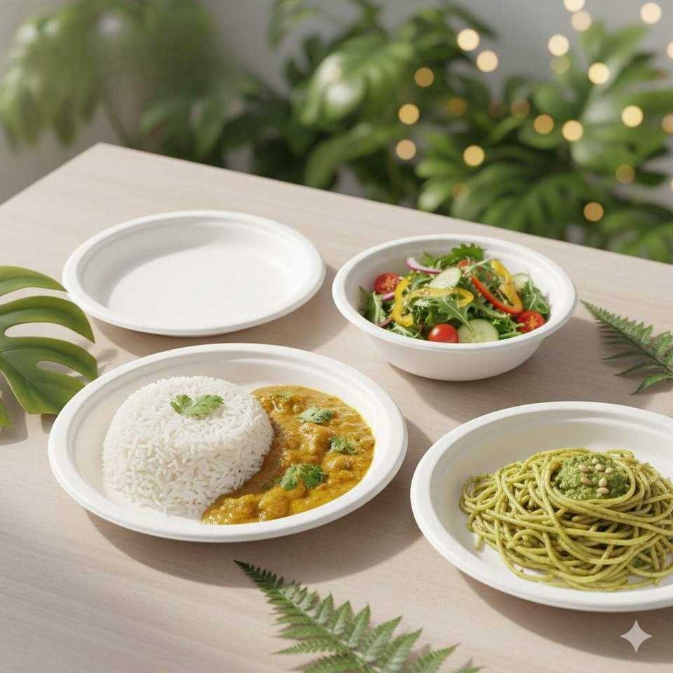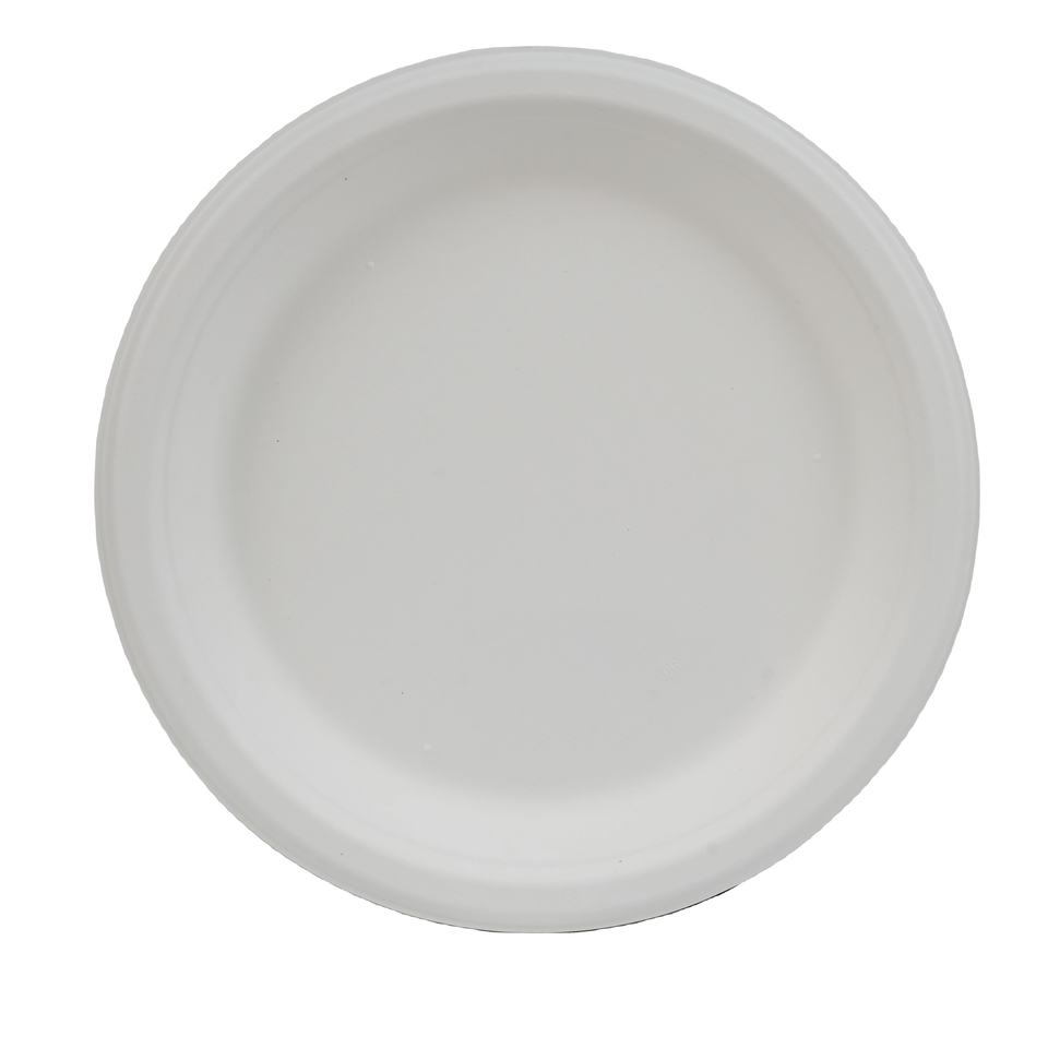 จานชานอ้อยแบบใช้แล้วทิ้งขนาด 7 นิ้ว ยี่ห้อ KEGO ขายส่ง เป็นมิตรกับสิ่งแวดล้อม ภาชนะใส่อาหารจากชานอ้อย ใช้กับไมโครเวฟได้ ทนความร้อน ย่อยสลายได้ทางชีวภาพ