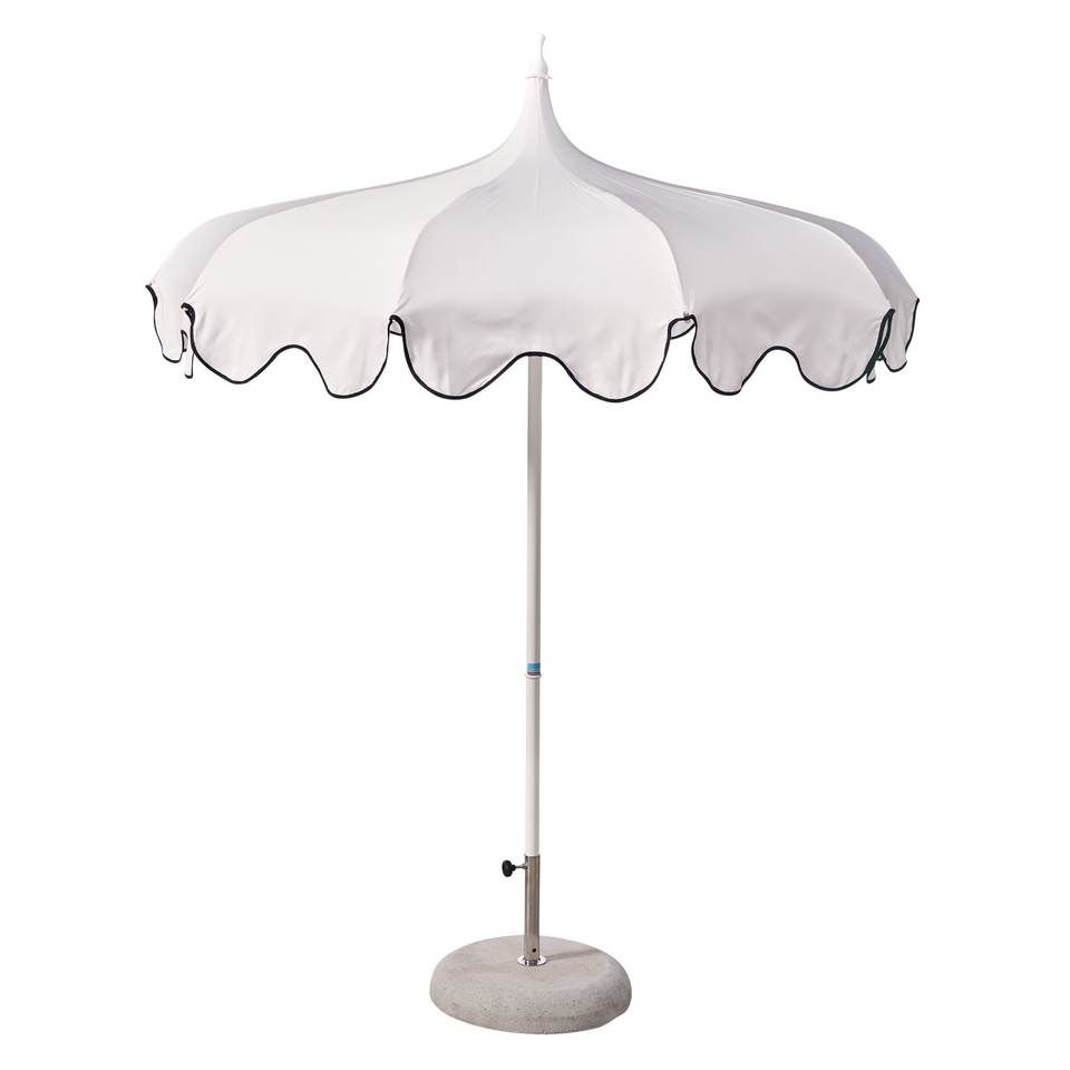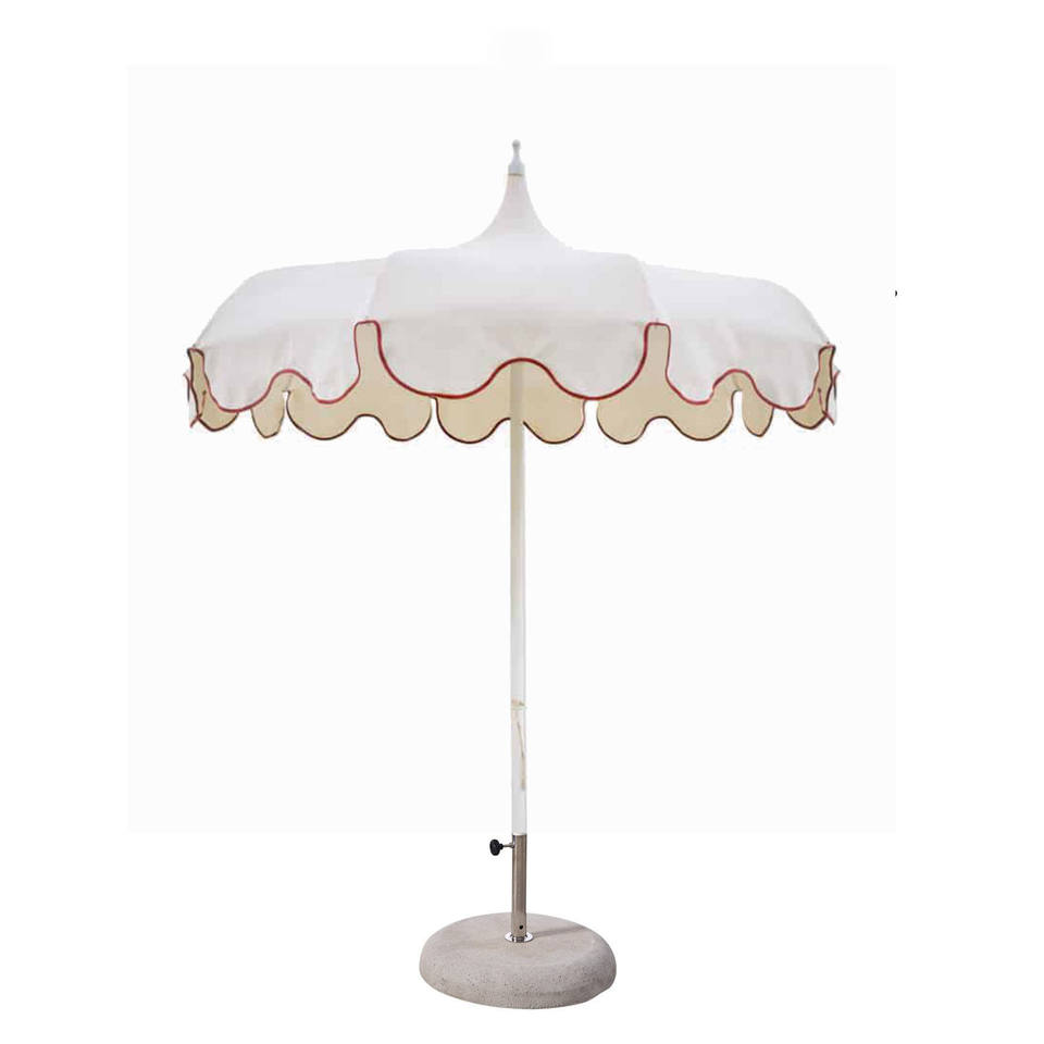 ร่มสนามทรงเจดีย์หรูหราสไตล์โบโฮสีขาววินเทจทันสมัยตกแต่งด้วยพู่ห้อยแบบสแกลลอป ขนาด 8.5 ฟุต สำหรับสระว่ายน้ำกลางแจ้ง ขายส่ง