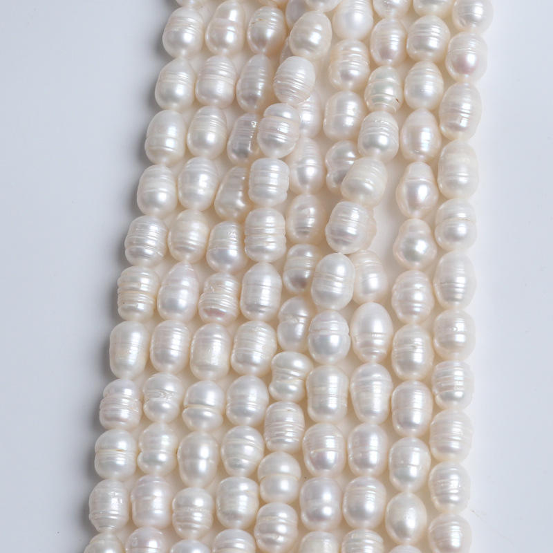 ไข่มุกน้ำจืดธรรมชาติทรงข้าว ขนาด 8-9 มม. สีขาว สำหรับทำสร้อยข้อมือ สร้อยคอ วัสดุ DIY พร้อมเม็ดไข่มุกแบบกระจาย