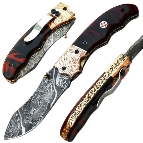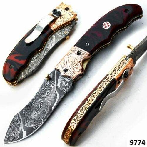 BEAUTIFUL CUSTOM HAND MADE DAMASCUS STEEL FOLDING KNIFE