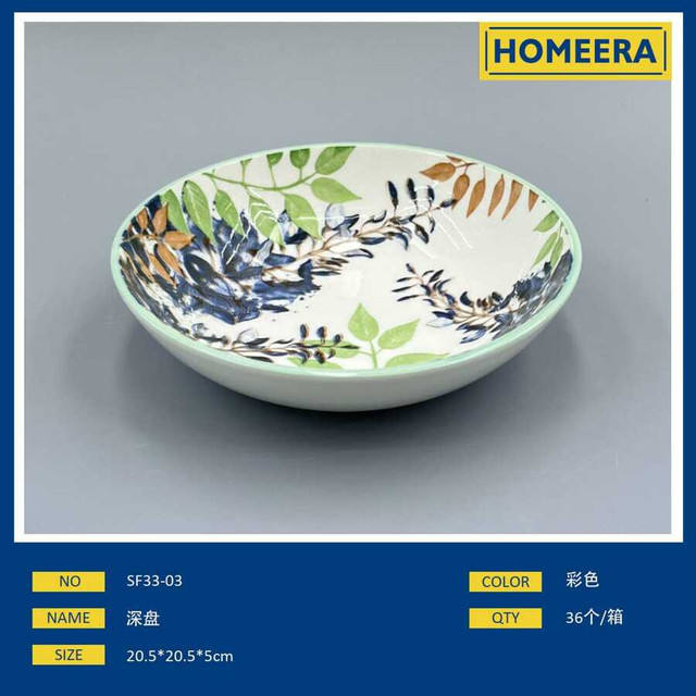 Wholesale 8 Inch 205cm Ceramic Soup Bowl with Glazed Floral Design Customizable Logo for Ramen Tableware Supplier