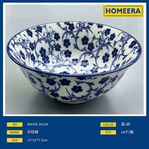Wholesale 8 Inch Ceramic Salad Bowls Decorative Blue and White Japanese Style Set of 3 for Pasta or Soup Tablewares