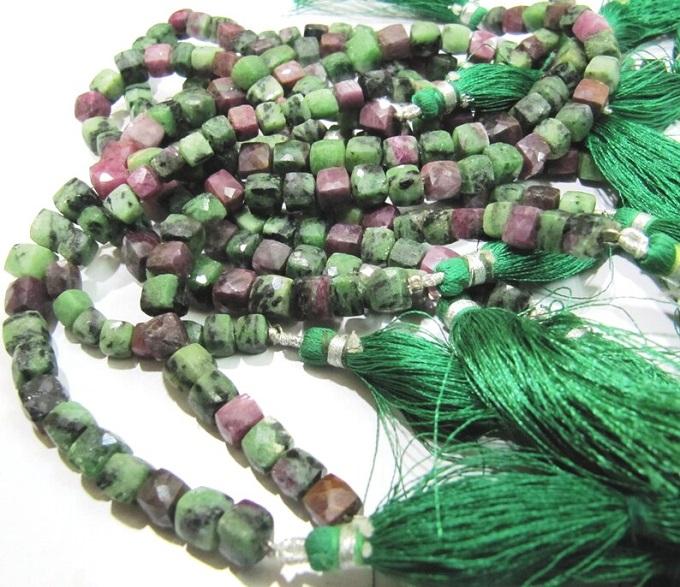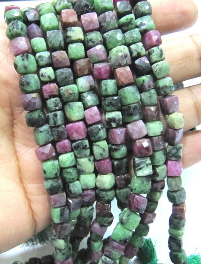 ลูกปัดกล่องซูไซต์ทับทิมธรรมชาติขนาดยาว8นิ้วลูกปัดเหลี่ยมเพชรพลอย3D ทรงลูกบาศก์6-7มม.