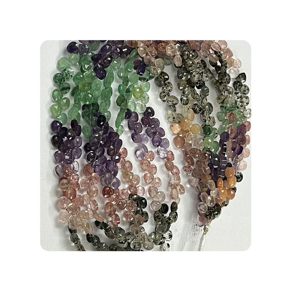 ขายส่ง8นิ้วสีชมพูสีขาวผสมควอทซ์เหลี่ยมเพชรพลอยรูปหัวใจขนาด5-5.5มม. โดยประมาณคุณภาพระดับพรีเมี่ยมสำหรับการทำเครื่องประดับ