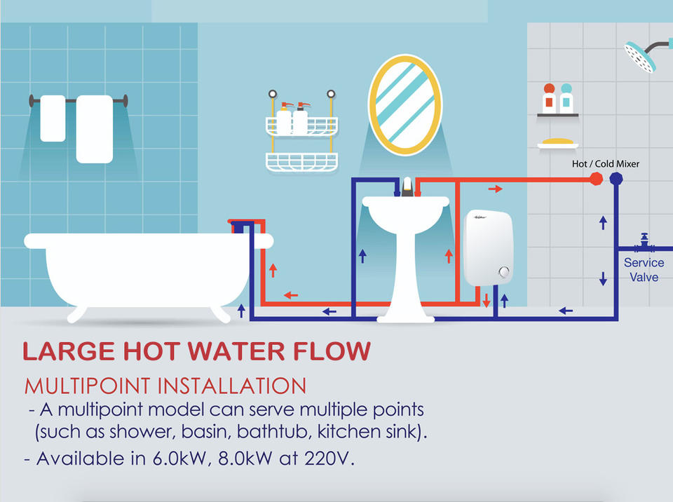 เครื่องทำน้ำร้อนทันทีติดผนัง8000W 220V-240V สำหรับใช้ในเชิงพาณิชย์ผู้ผลิต OEM พลาสติกภาษาอังกฤษ