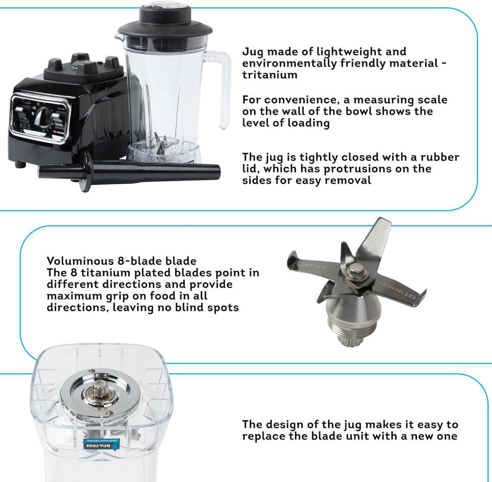 วัสดุใบมีด:SUS 304/ สแตนเลส, แก้ว PC เกรดอาหาร