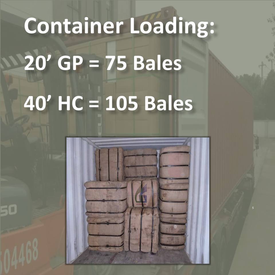 75 bales/20ft or 105 bales/40ft HC Container