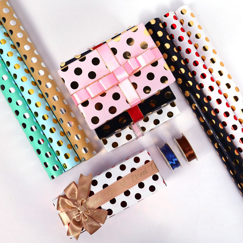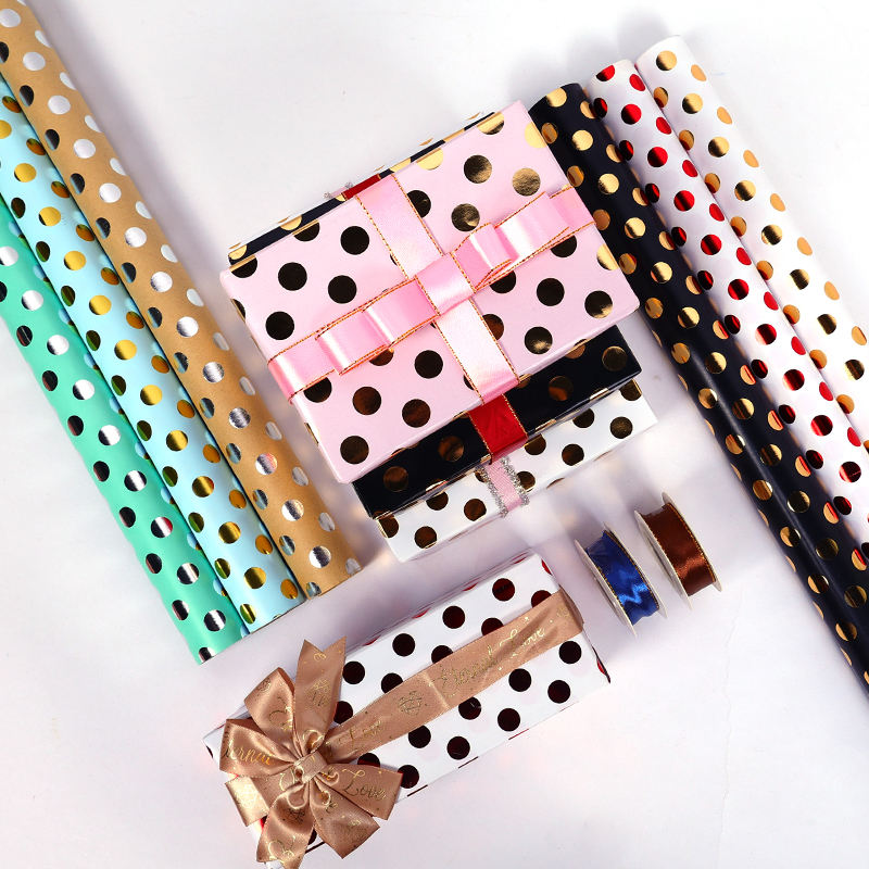 Wholesale 80g Birthday Dot Gold Stamping Art Paper Tissue 43*300cm Gift Luxury Custom Packaging Wrapping Paper Roll