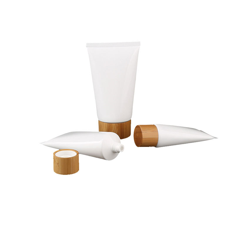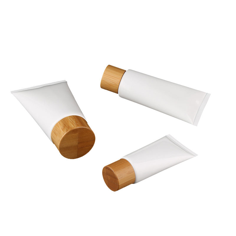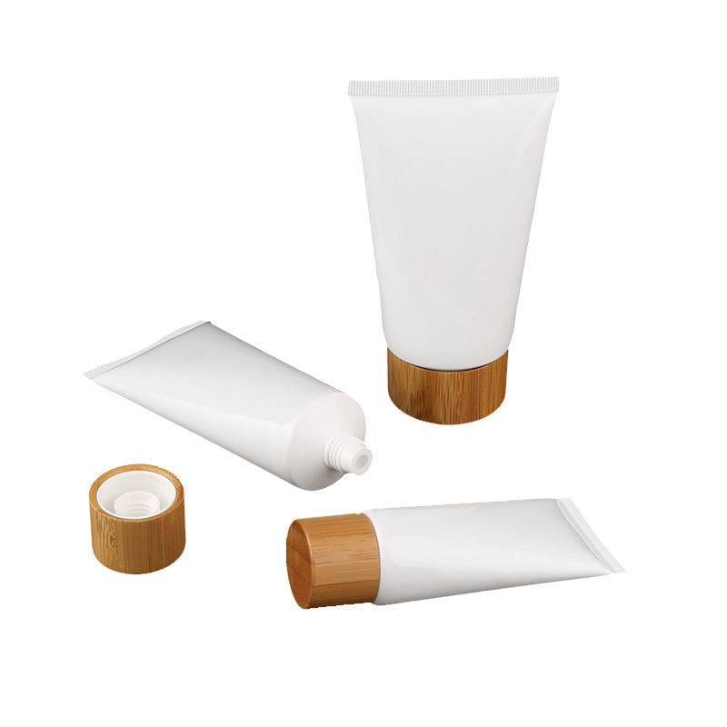 หลอดพลาสติก PE 88มล. พร้อมฝาไม้ไผ่สำหรับครีมกันแดด BB ครีมรองพื้นเครื่องสำอางแบบบีบหลอดพลาสติก