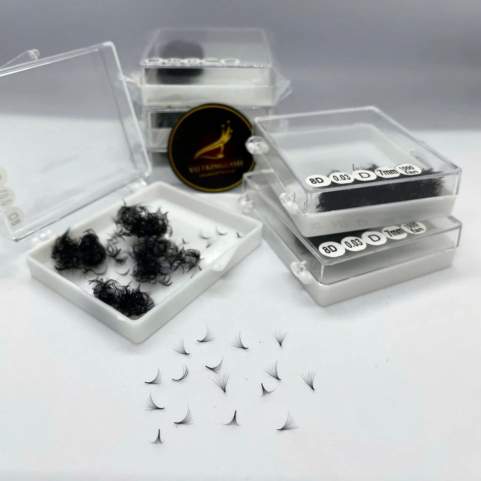 ขนตาปลอมแบบกล่องสำเร็จรูป 8D แบบปลายแหลม สีดำด้าน ผลิตจาก PBT สังเคราะห์เกาหลี ขนตาแบบวอลลุ่ม โรงงานเวียดนาม เนื้อด้านพิเศษ ขายส่ง