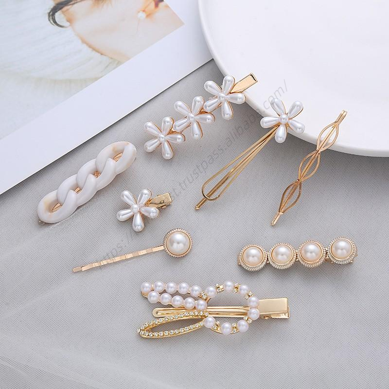ขายส่งกิ๊บติดผม 8 ชิ้น กิ๊บโลหะมินิประดับมุกน่ารัก รูปกระต่าย ของขวัญเทศกาลคริสต์มาสสำหรับเด็กผู้หญิง