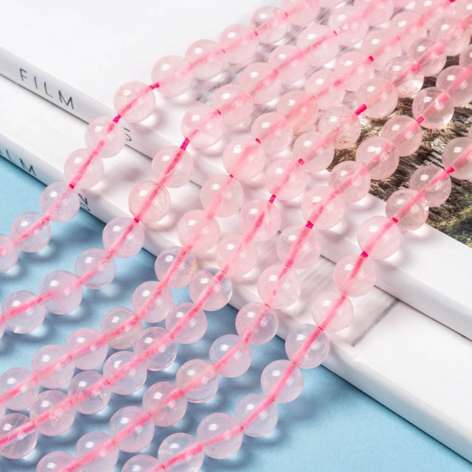 ลูกปัดโรสควอตซ์สีชมพูธรรมชาติขนาด 8 มม. รูปทรงกลม สำหรับทำเครื่องประดับ DIY สร้อยข้อมือ สร้อยคอ ต่างหู ขายส่ง