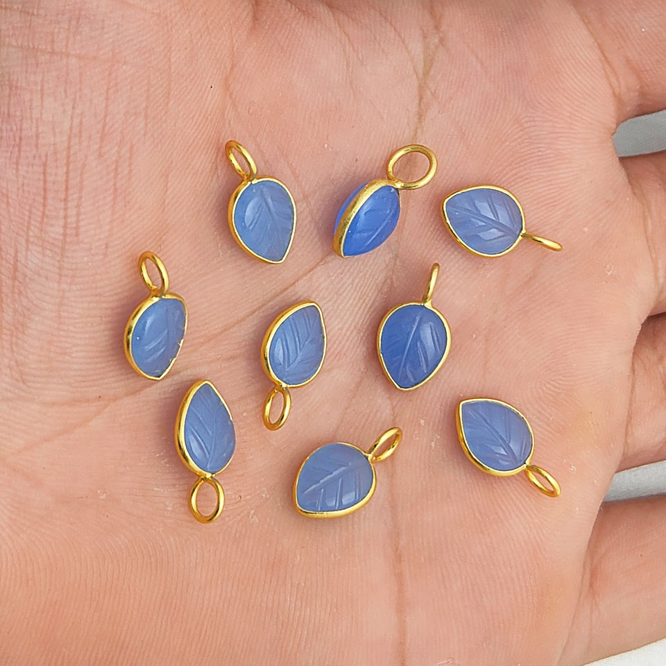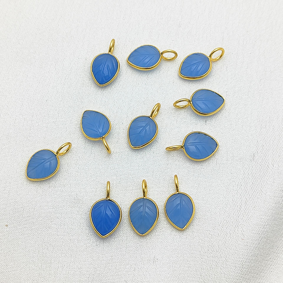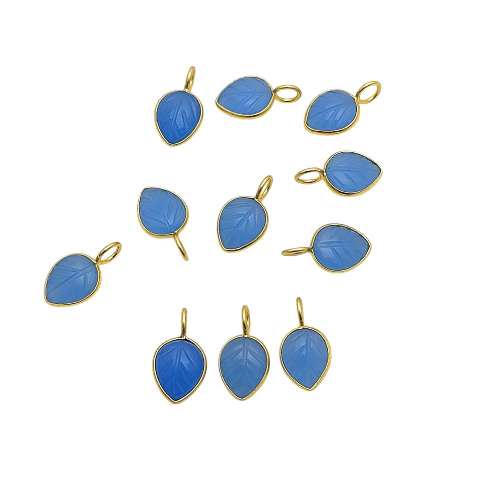 จี้ห้อยรูปใบไม้แกะสลักจากพลอยแคลซิโดนีสีน้ำเงิน ขนาด 8x10 มม. ชุบทองเหลือง ประดับเพชร ของขวัญทางศาสนาอิสลาม ขายส่ง