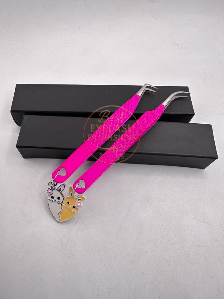 แหนบปลายแหลมสำหรับต่อขนตาแบบเคลือบสีชมพูร้อน 90 องศา ขายส่ง พร้อมบริการสั่งทำพวงกุญแจโลโก้ อุปกรณ์เสริมความงาม