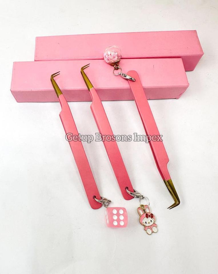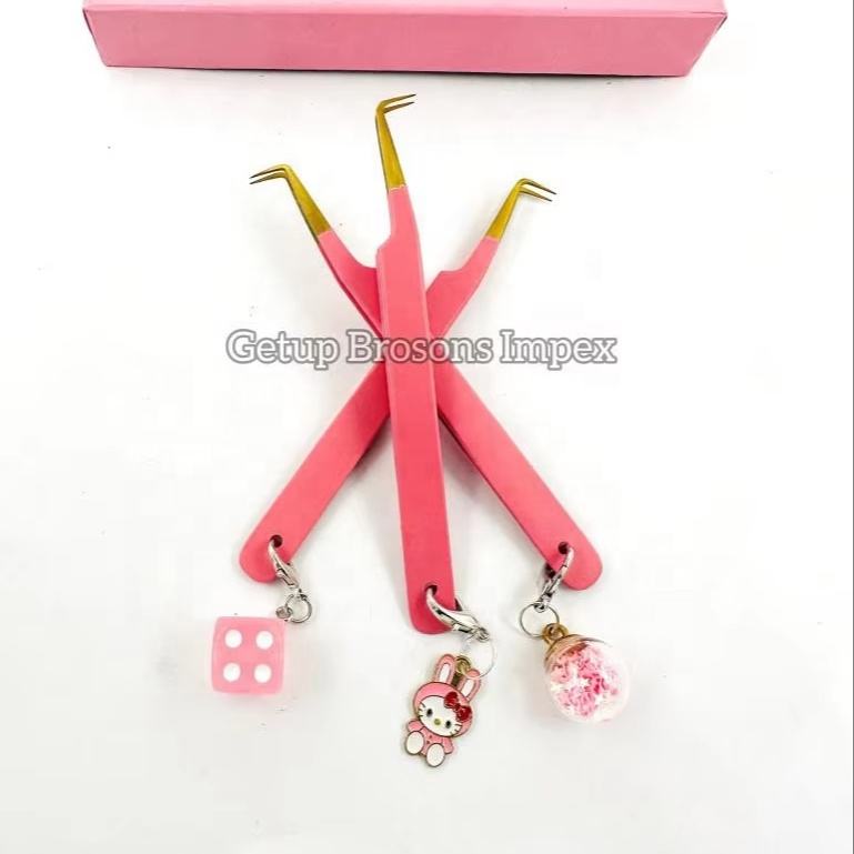 แหนบปลายแหลมสำหรับต่อขนตาแบบเคลือบสีชมพู 90 องศา ขายส่ง พร้อมจี้ห้อยพวงกุญแจแบบกำหนดเอง โลโก้สั่งทำ อุปกรณ์เสริมความงาม