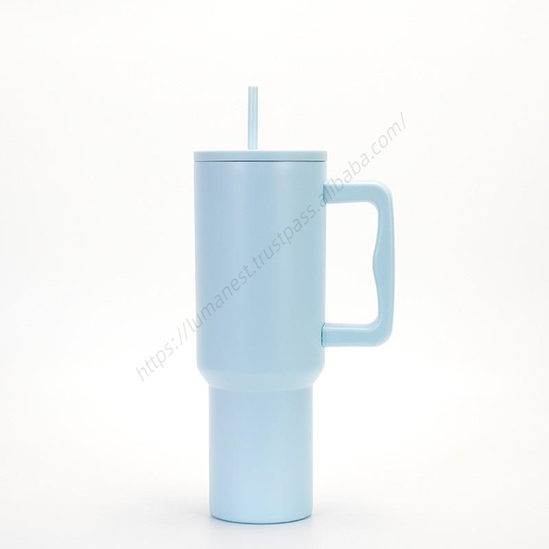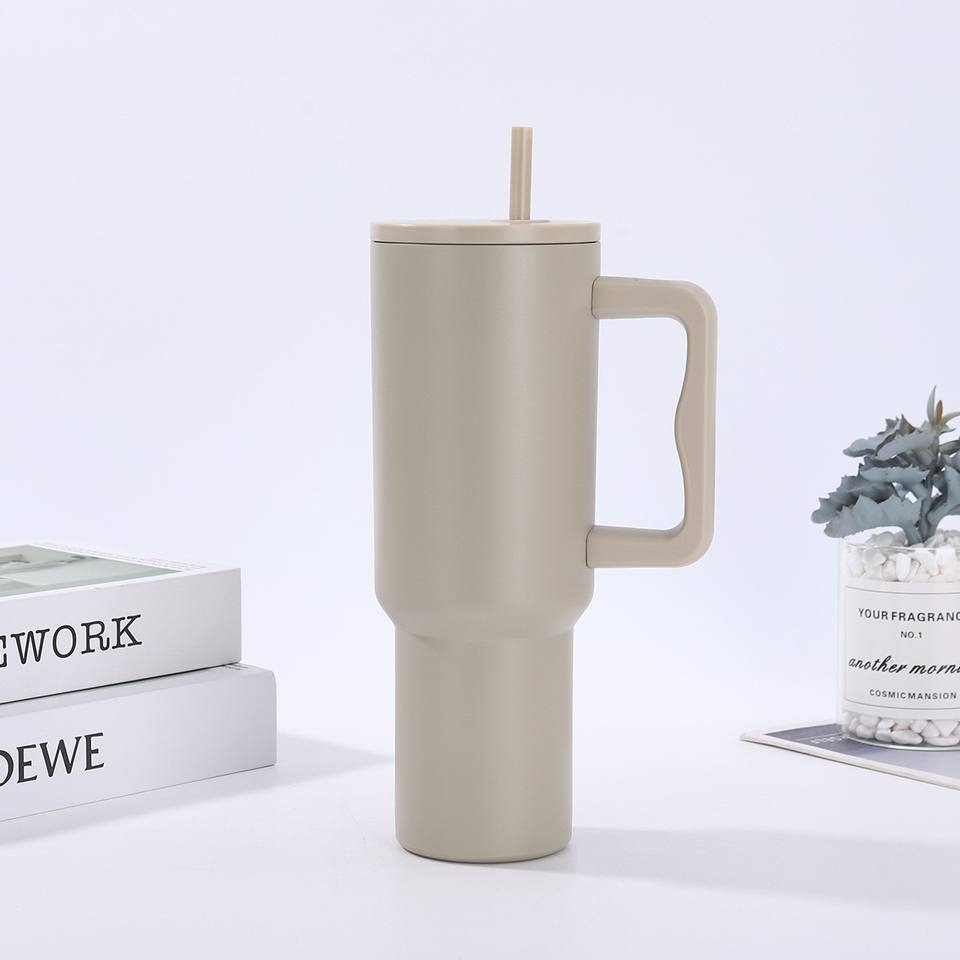 แก้วน้ำสแตนเลสแบบมีหูจับพร้อมหลอดดูด ขนาด 900 มล. สำหรับใช้ในบ้านและนอกบ้าน แก้วน้ำเก็บความร้อน-เย็น สำหรับกาแฟและน้ำดื่ม ขายส่ง