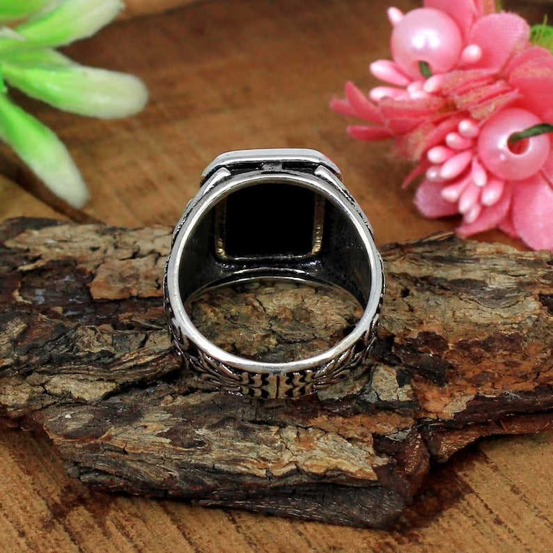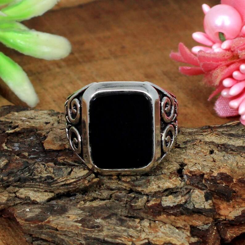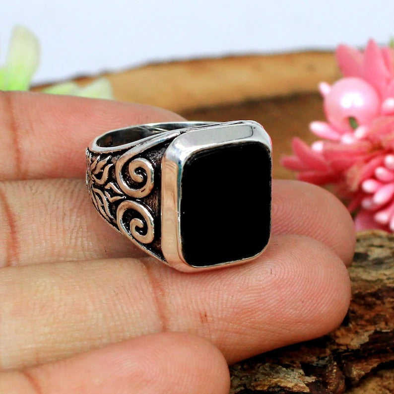 แหวนเงินสเตอร์ลิง92.5อัญมณีสีดำแบบหลวม