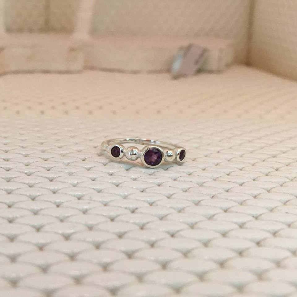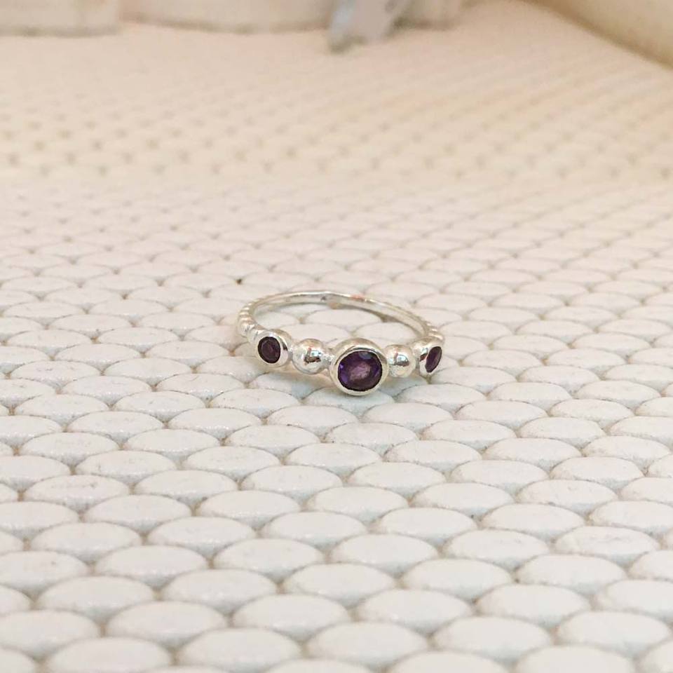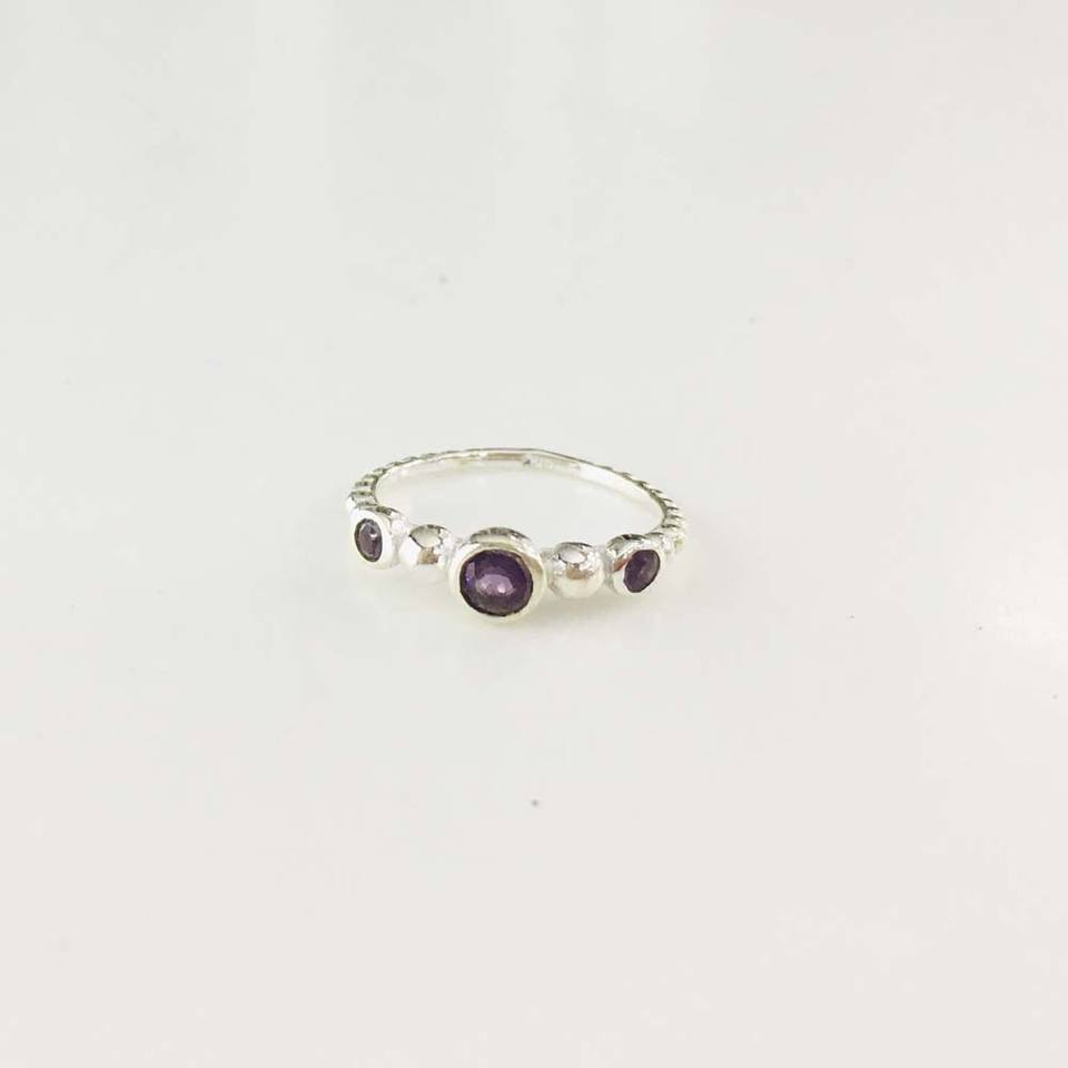 เครื่องประดับแฟชั่นสำหรับสุภาพสตรีสีเงิน925แหวนอเมทิสต์ตัดสีเงินพร้อมกรอบ