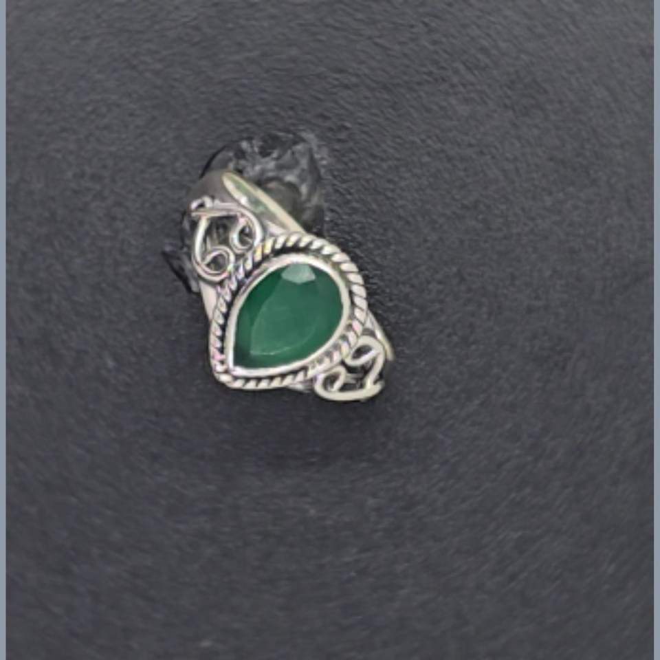 แหวนเงินโอนิกซ์สีเขียว