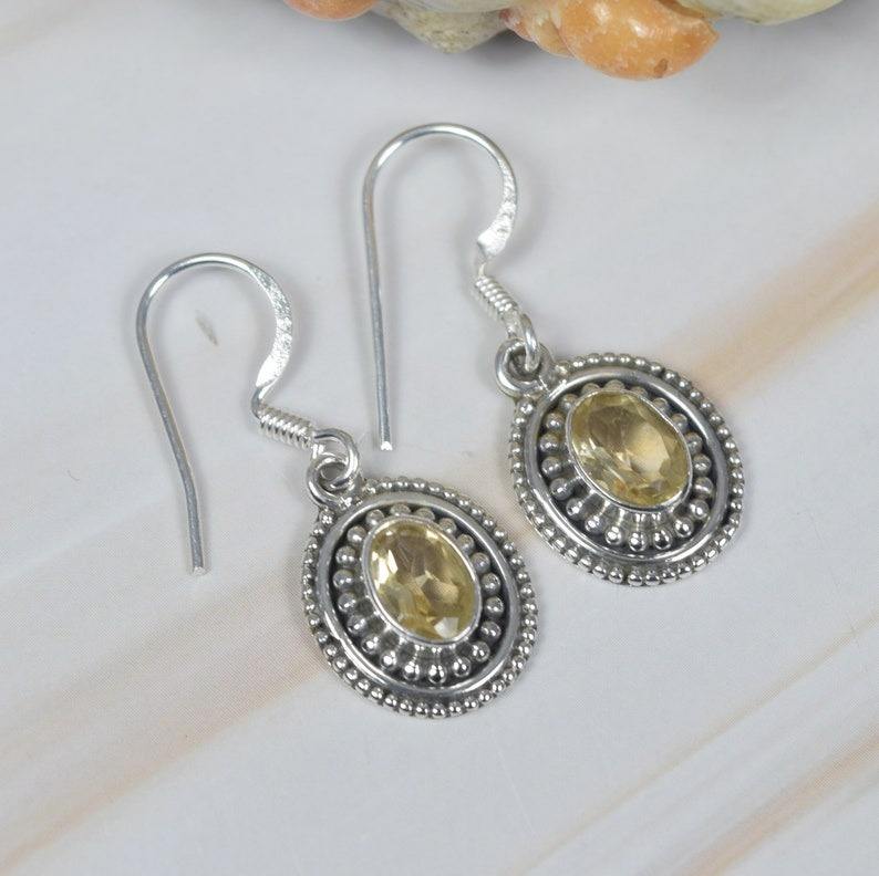 ต่างหูหยดน้ำสีเงินสเตอร์ลิงแบบ925สำหรับผู้หญิงชุบทองด้วยพลอยซิทรีนที่ทันสมัยดีไซน์แบบแฮนด์เมด