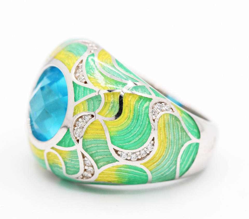 แหวน925เคลือบสีเงินแท้ทรงกลมอัญมณีเซอร์คอนสีโทแพซเซอร์คอนสีฟ้าสำหรับงานแต่งงาน