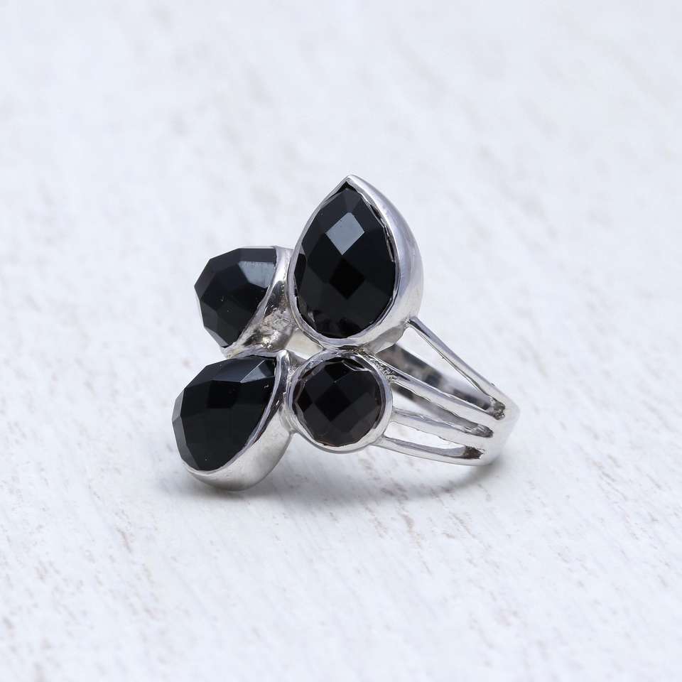 แหวนเงินสเตอร์ลิงแบบแข็ง925สำหรับใส่เครื่องประดับที่ดีสำหรับงานแต่งงานแหวนเงินแท้สีดำนิลแพร์สีดำธรรมชาติที่สง่างาม