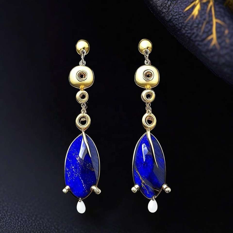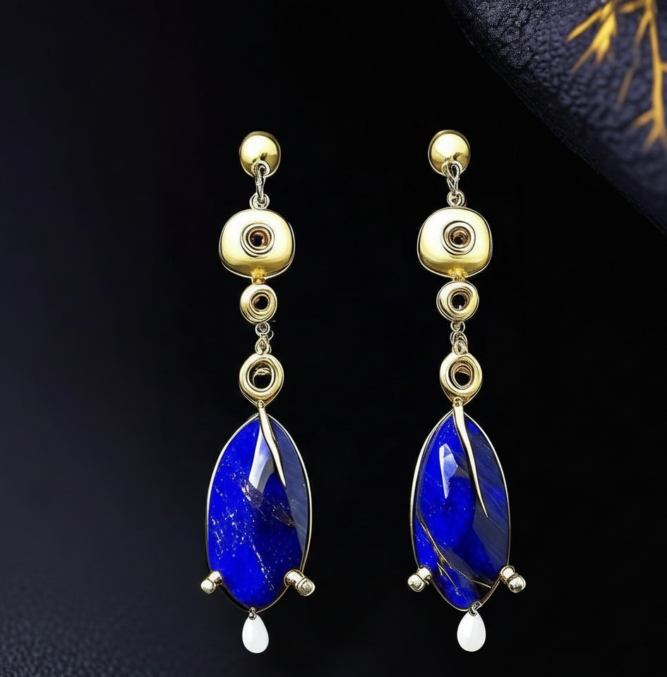 ต่างหูเงินแท้ 925 ชุบทอง 18K ประดับลาพิสสุดหรู